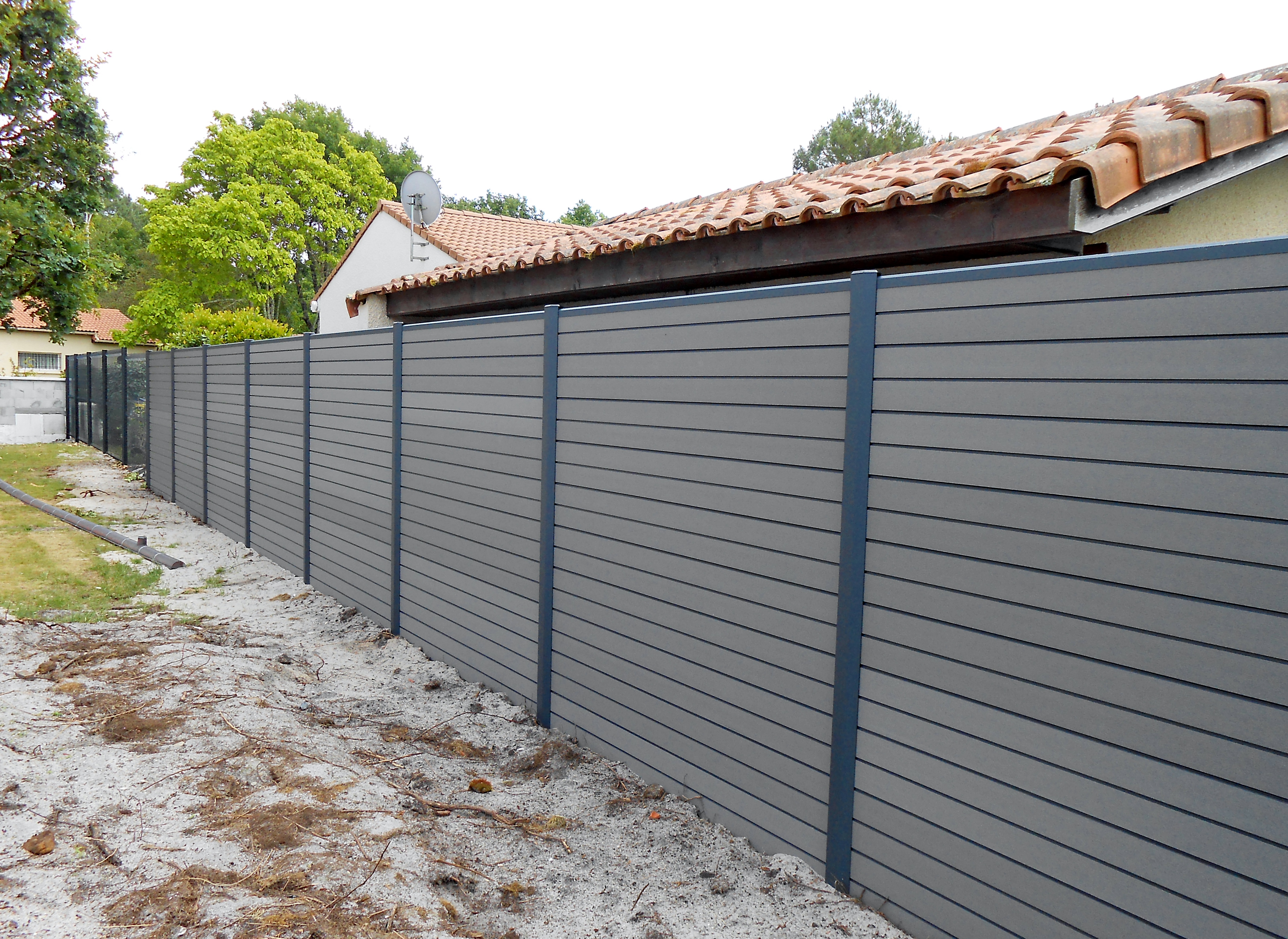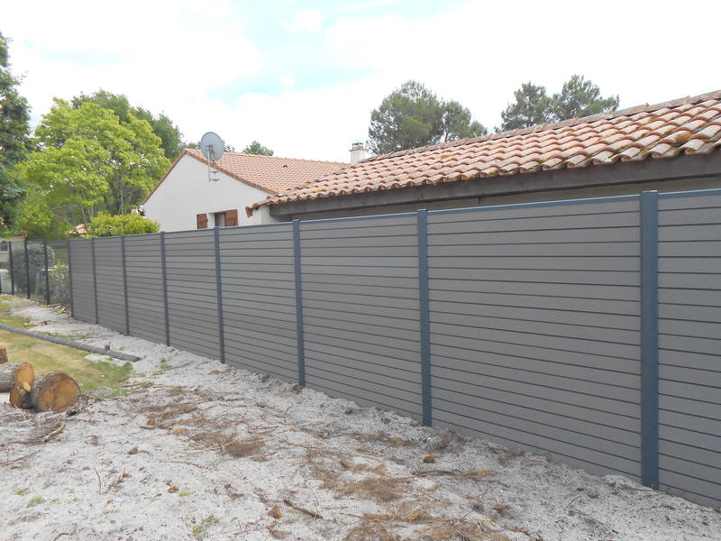 Fourniture et pose d'une clôture en Bois Composite couleur Gris Anthracite d'une hauteur de 1m83 avec poteaux aluminium Gris Anthracite, sur la commune de LA TESTE DE BUCH (33), en Gironde.