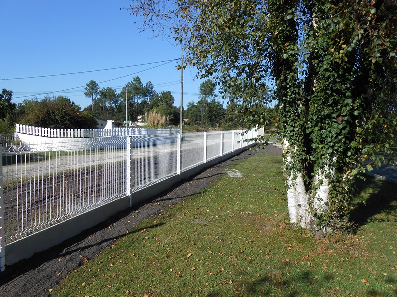 Fourniture et pose d'une clôture en Panneau Rigide couleur Blanc, d'une hauteur de 1m23 avec plaques de soubassement de 0m25 Sans Occultation, sur la commune de SALLES (33), en Gironde.