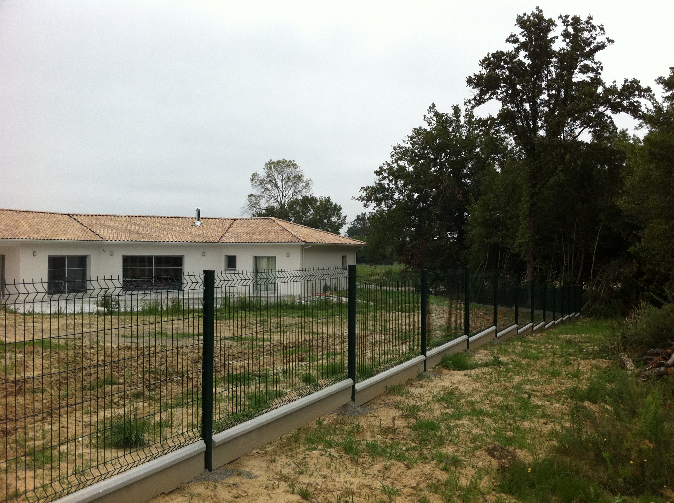 Fourniture et pose d'une clôture en Panneau Rigide couleur Vert, d'une hauteur de 1m23 avec plaques de soubassement ht 0m25 sans Occultation, sur la commune de BOULIAC (33), en Gironde.