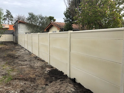 Fourniture et pose d'une clôture en Béton Lisse Ton Pierre, d'une hauteur de 1m74, sur la commune de LANTON (33), en Gironde.