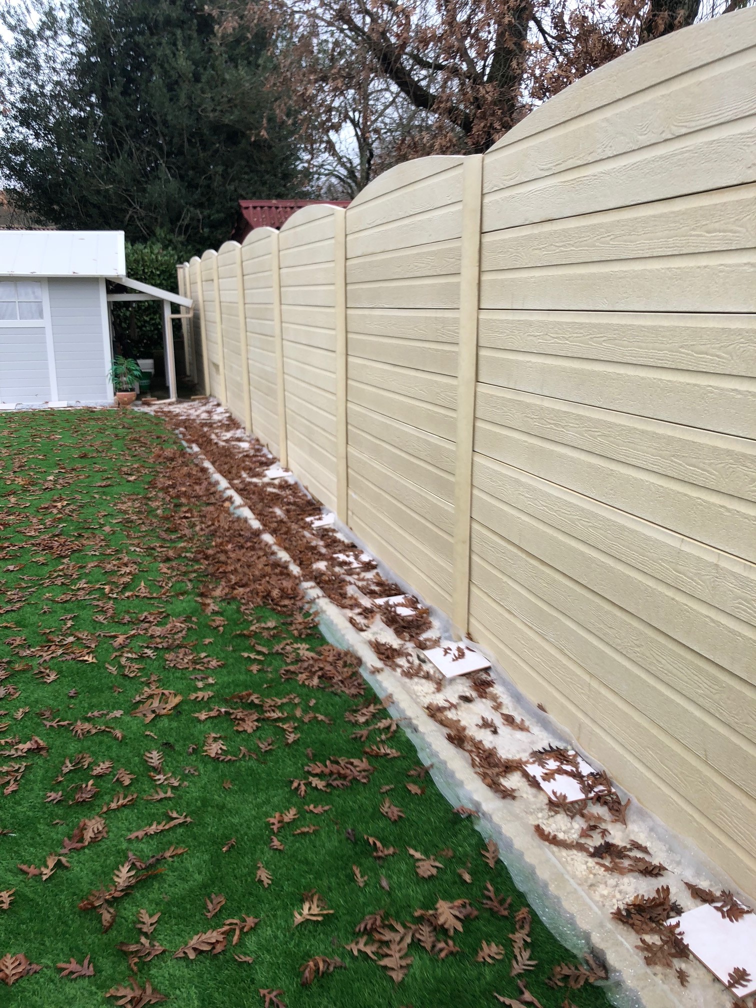 Fourniture et pose d'une clôture en Béton Forêt Ton Pierre, d'une hauteur de 1m79, sur la commune de MARCHEPRIME (33), en Gironde.